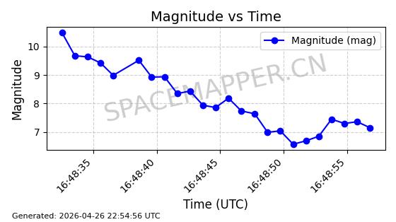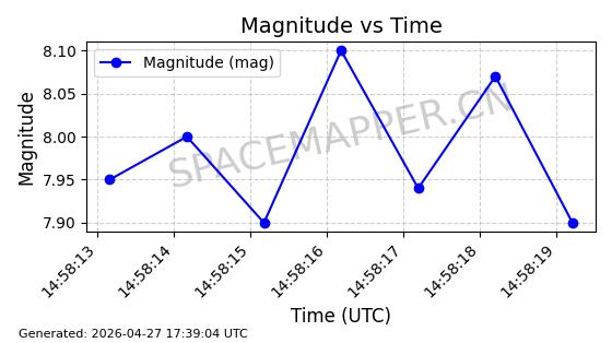 | JILIN-01 GAOFEN 3D 7 | 52392 | 52392 | 2022-04-30 同日期轨道 2022-046E 同批次轨道 | 已陨落 | 88分钟 | 97.4708 | 153.275 | 165.265 | 0.0009170 | 2026-01-25 18:50:31 | ![]() | |