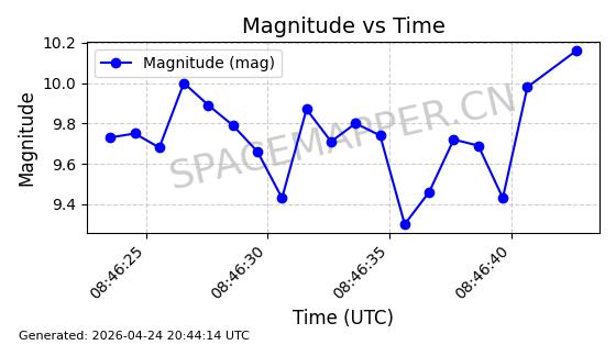 | 卫星名称 | AOE ID | NORAD ID | 发射日期 国际编号 | 在轨状态 | 轨道周期 | 轨道倾角 (度) | 近地点 (Km) | 远地点 (Km) | 偏心率 | 更新时间 (UTC) | 近期光变曲线 | 服务 |