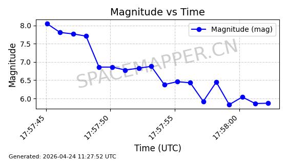 | METOP SG-A | 65159 | 65159 | 2025-08-13 同日期轨道 2025-172A 同批次轨道 | 在轨 | 101分钟 | 98.6679 | 819.285 | 821.219 | 0.0001342 | 2026-04-27 04:16:27 | ![]() |