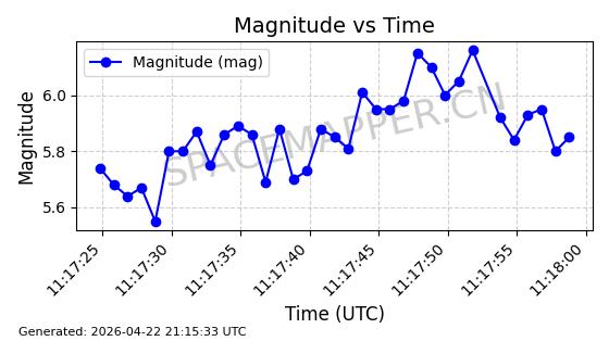 | 卫星名称 | AOE ID | NORAD ID | 发射日期 国际编号 | 在轨状态 | 轨道周期 | 轨道倾角 (度) | 近地点 (Km) | 远地点 (Km) | 偏心率 | 更新时间 (UTC) | 近期光变曲线 | 服务 |