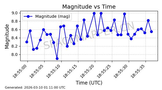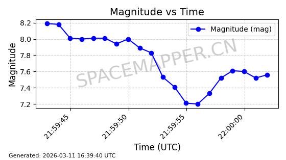 | 卫星名称 | AOE ID | NORAD ID | 发射日期 国际编号 | 在轨状态 | 轨道周期 | 轨道倾角 (度) | 近地点 (Km) | 远地点 (Km) | 偏心率 | 更新时间 (UTC) | 近期光变曲线 | 服务 |