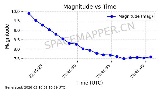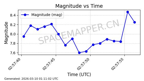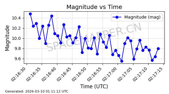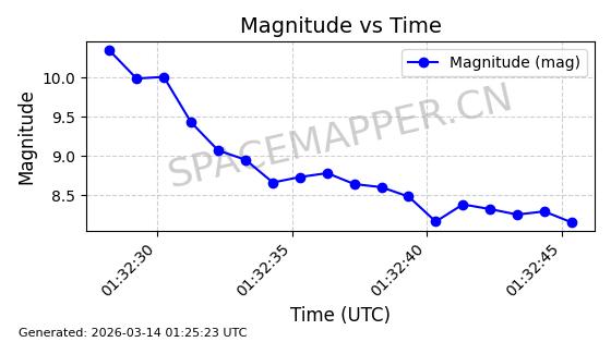 | ORBCOMM FM 10 | 25113 | 25113 | 1997-12-23 同日期轨道 1997-084B 同批次轨道 | 在轨 | 100分钟 | 45.0139 | 733.042 | 739.74 | 0.0004706 | 2026-03-12 06:34:45 | ||