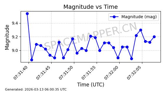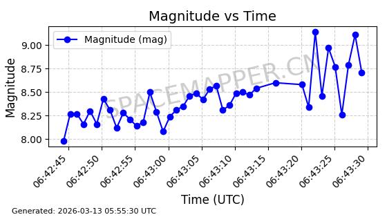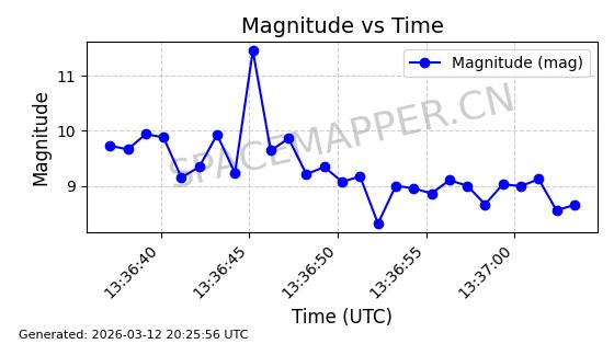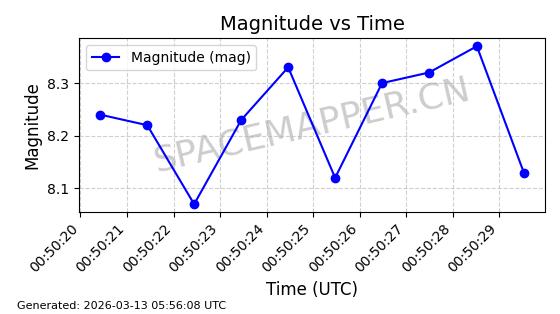 | ORBCOMM FM 13 | 25420 | 25420 | 1998-08-02 同日期轨道 1998-046H 同批次轨道 | 在轨 | 100分钟 | 44.9991 | 760.888 | 766.316 | 0.0003799 | 2026-03-12 22:32:18 | ||