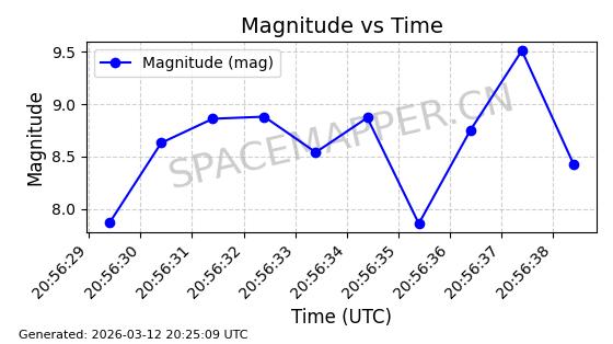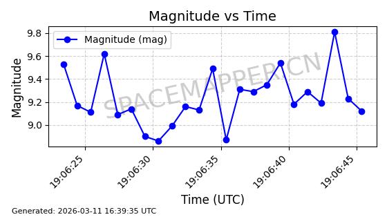 | ORBCOMM FM 19 | 25415 | 25415 | 1998-08-02 同日期轨道 1998-046C 同批次轨道 | 在轨 | 100分钟 | 44.9958 | 759.338 | 762.402 | 0.0002145 | 2026-03-12 23:06:00 | ||