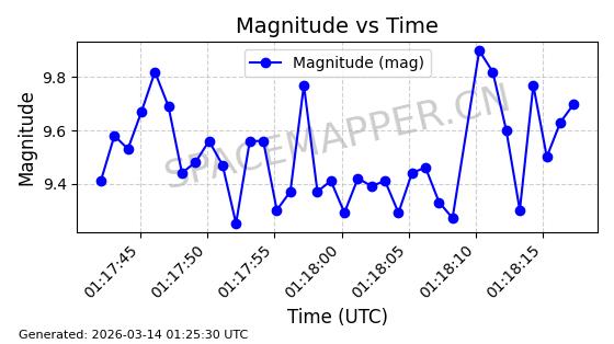 | ORBCOMM FM 17 | 25413 | 25413 | 1998-08-02 同日期轨道 1998-046A 同批次轨道 | 在轨 | 100分钟 | 44.9940 | 772.076 | 773.066 | 0.0000691 | 2026-03-12 23:35:11 | ||