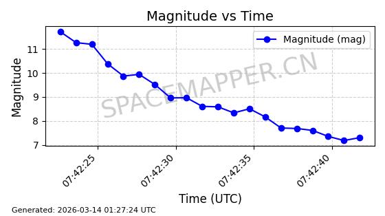| ORBCOMM FM 11 | 25114 | 25114 | 1997-12-23 同日期轨道 1997-084C 同批次轨道 | 在轨 | 100分钟 | 45.0120 | 733.329 | 741.179 | 0.0005515 | 2026-03-12 16:07:00 | ||