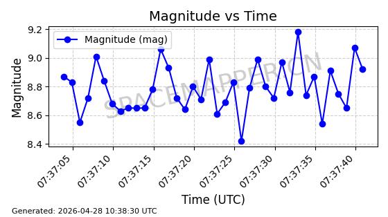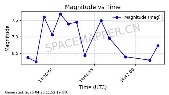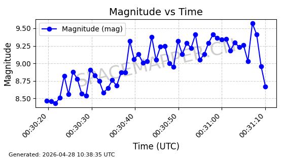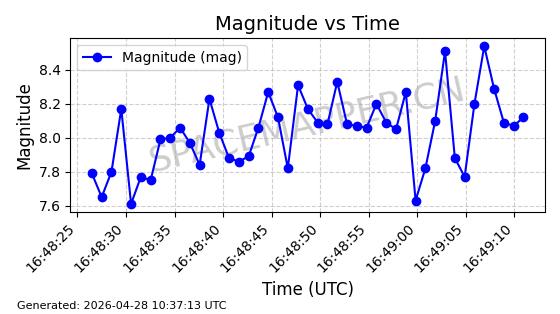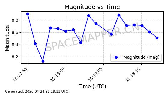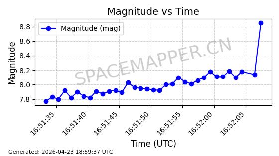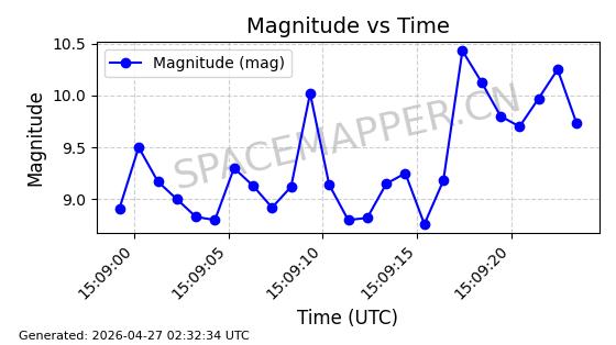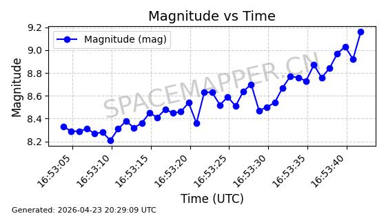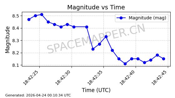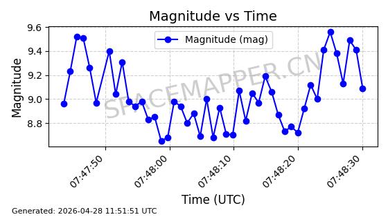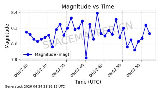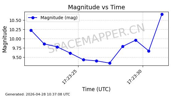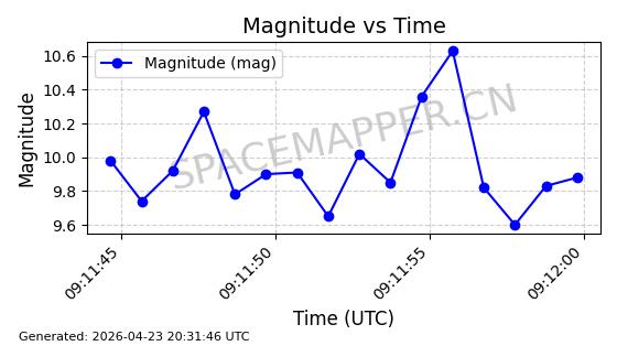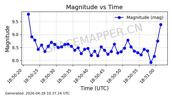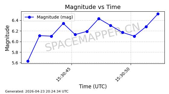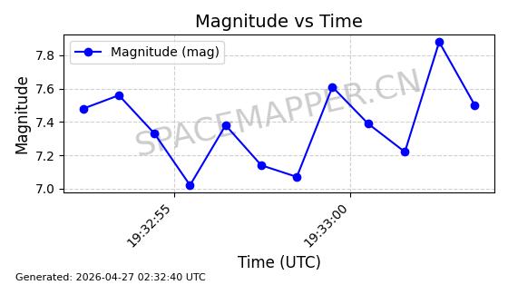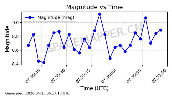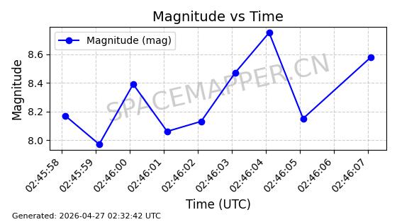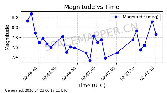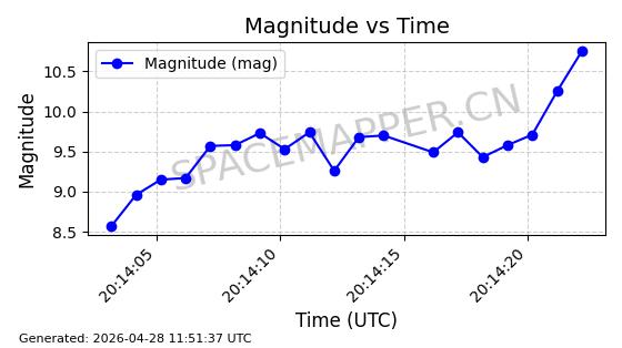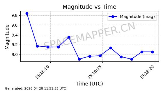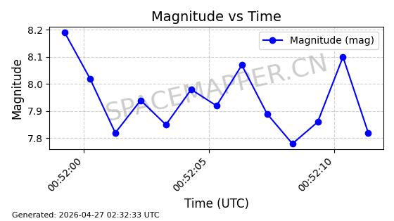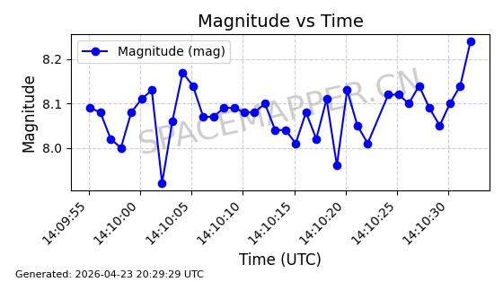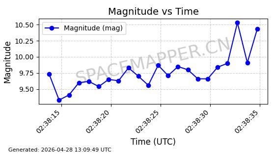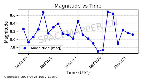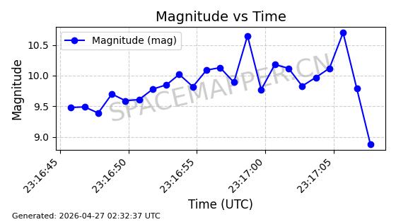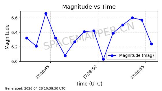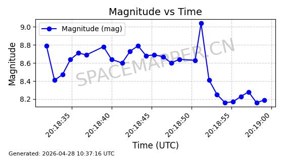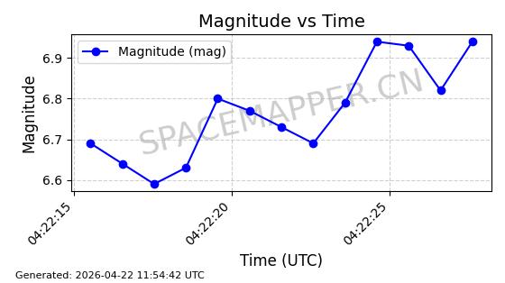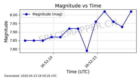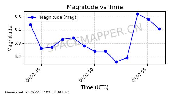 | 卫星名称 | AOE ID | NORAD ID | 发射日期 国际编号 | 在轨状态 | 轨道周期 | 轨道倾角 (度) | 近地点 (Km) | 远地点 (Km) | 偏心率 | 更新时间 (UTC) | 近期光变曲线 | 服务 |