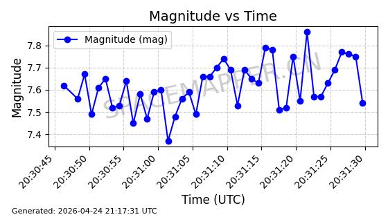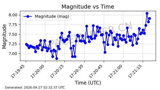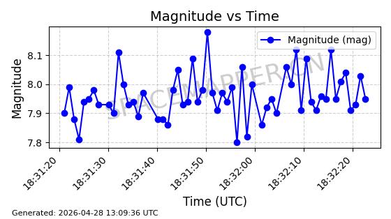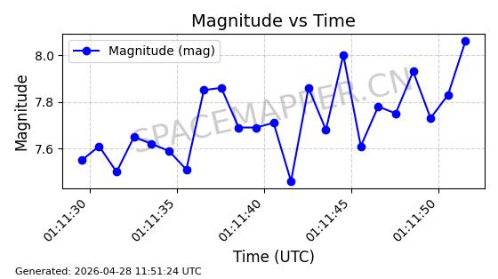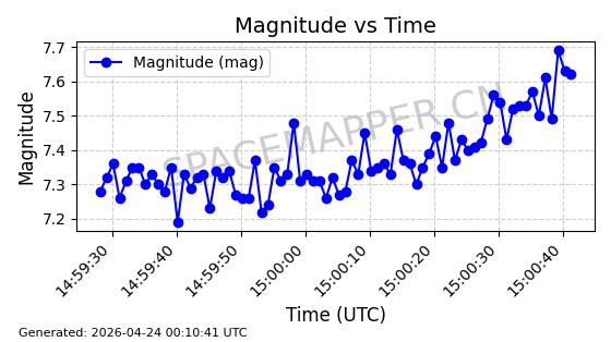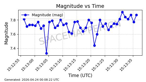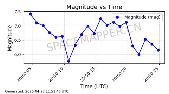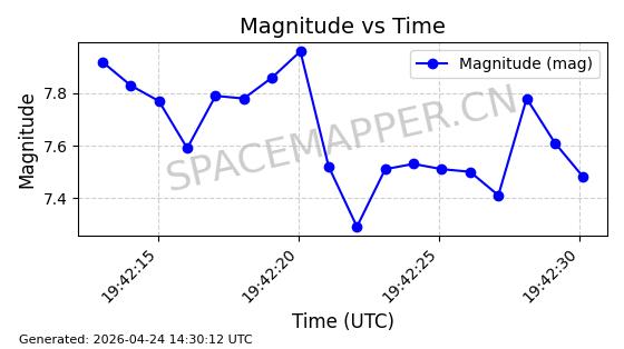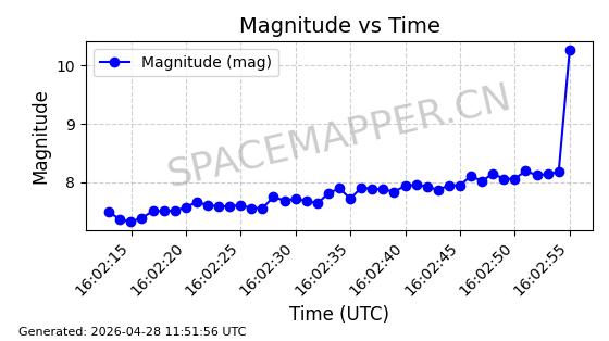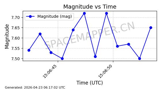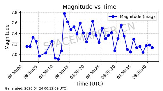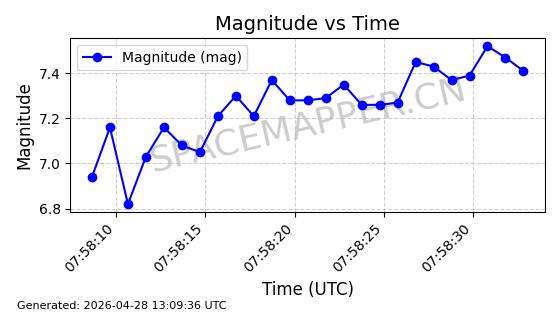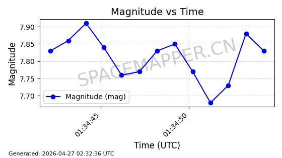 | COSMOS 726 | 7736 | 7736 | 1975-04-11 同日期轨道 1975-028A 同批次轨道 | 在轨 | 104分钟 | 82.9937 | 950.501 | 988.275 | 0.0025705 | 2026-04-26 19:54:19 | ||