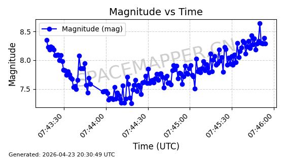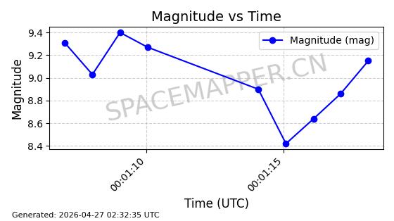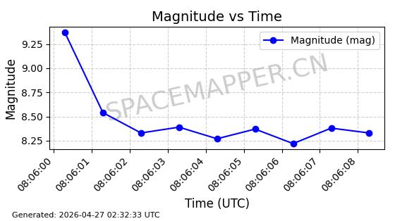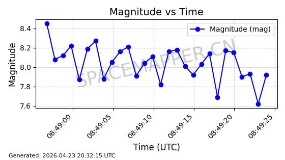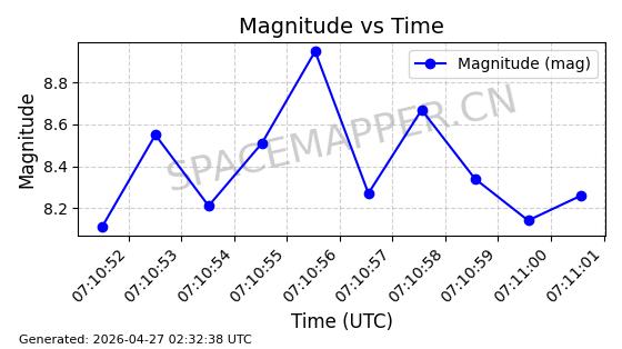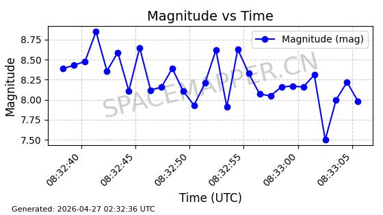 | COSMOS 755 | 8072 | 8072 | 1975-08-14 同日期轨道 1975-074A 同批次轨道 | 在轨 | 105分钟 | 82.9015 | 964.998 | 1003.954 | 0.0026454 | 2026-04-27 02:55:56 | ||