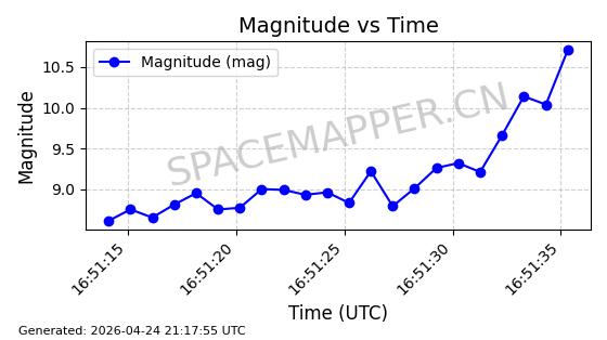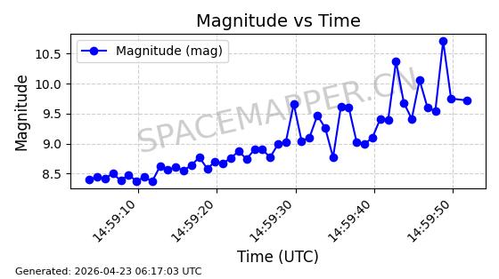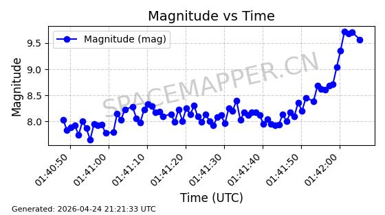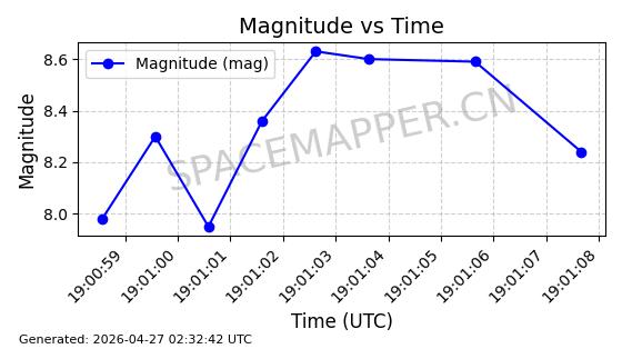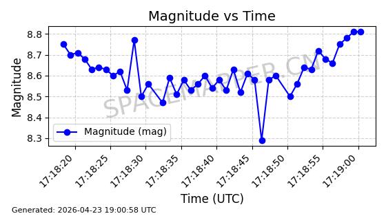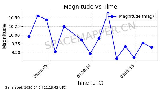 | COSMOS 1959 | 19324 | 19324 | 1988-07-18 同日期轨道 1988-062A 同批次轨道 | 在轨 | 105分钟 | 82.9508 | 952.94 | 1000.786 | 0.0032526 | 2026-04-27 05:18:42 | ||