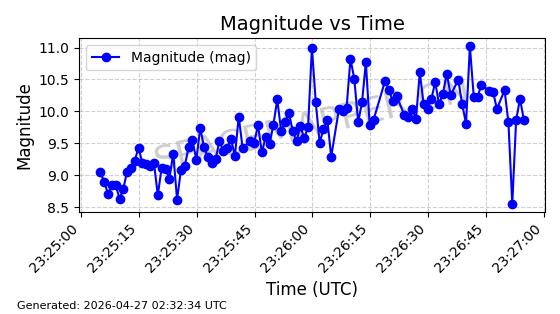 | COSMOS 1104 | 11378 | 11378 | 1979-05-31 同日期轨道 1979-046A 同批次轨道 | 在轨 | 105分钟 | 82.9429 | 954.218 | 1002.05 | 0.0032510 | 2026-04-27 07:23:42 | ||