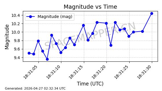 | COSMOS 996 | 10744 | 10744 | 1978-03-28 同日期轨道 1978-031A 同批次轨道 | 在轨 | 105分钟 | 82.9243 | 948.721 | 1002.281 | 0.0036417 | 2026-04-27 02:01:46 | ||