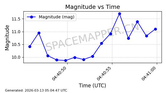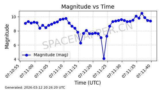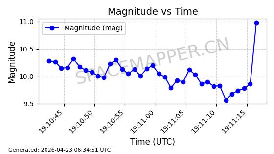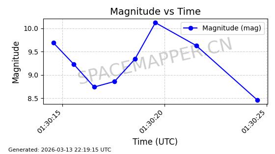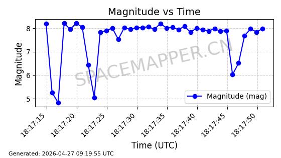 | 卫星名称 | AOE ID | NORAD ID | 发射日期 国际编号 | 在轨状态 | 轨道周期 | 轨道倾角 (度) | 近地点 (Km) | 远地点 (Km) | 偏心率 | 更新时间 (UTC) | 近期光变曲线 | 服务 |