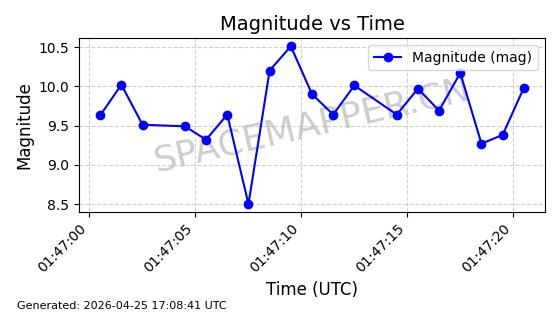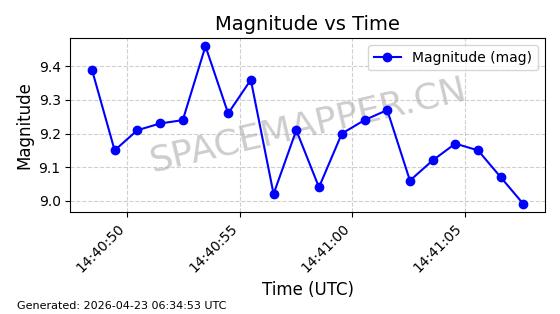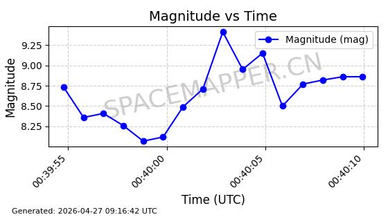 | SURCAL 159 | 2872 | 2872 | 1967-05-31 同日期轨道 1967-053F 同批次轨道 | 在轨 | 103分钟 | 69.9717 | 889.704 | 900.728 | 0.0007578 | 2026-04-27 06:33:22 | ||