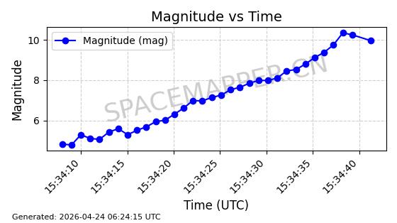| STARLINK-11097 | 59759 | 59759 | 2024-05-14 同日期轨道 2024-091G 同批次轨道 | 在轨 | 92分钟 | 53.1591 | 359.019 | 360.415 | 0.0001035 | 2026-04-27 00:22:51 | ||