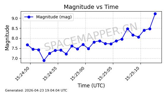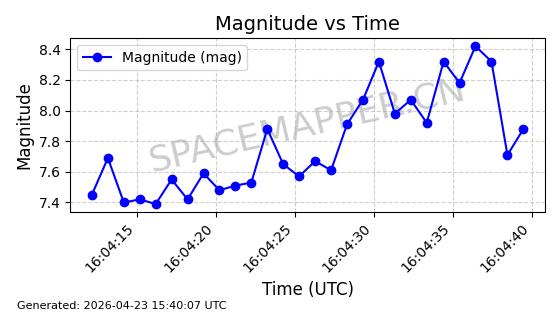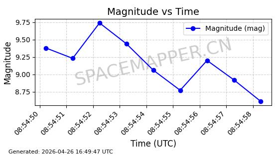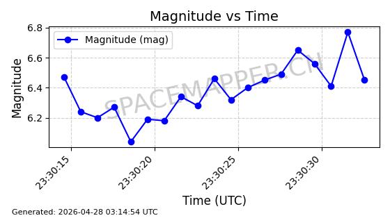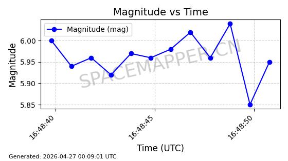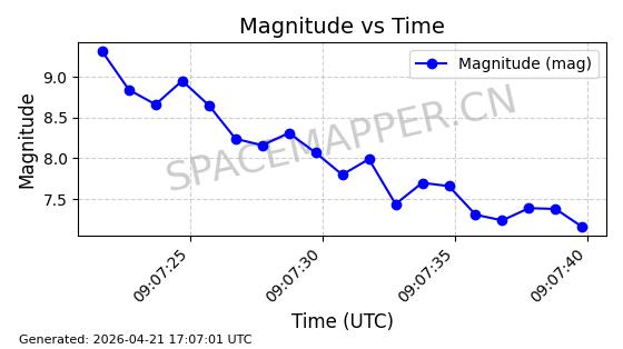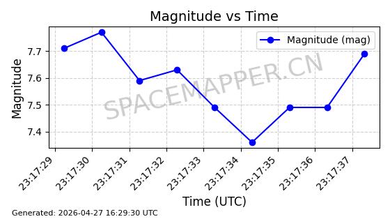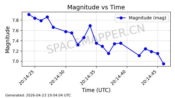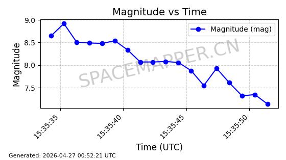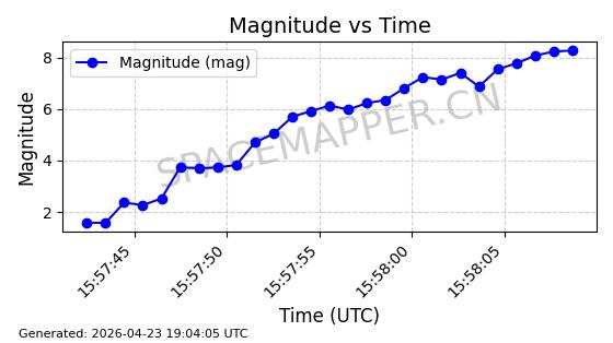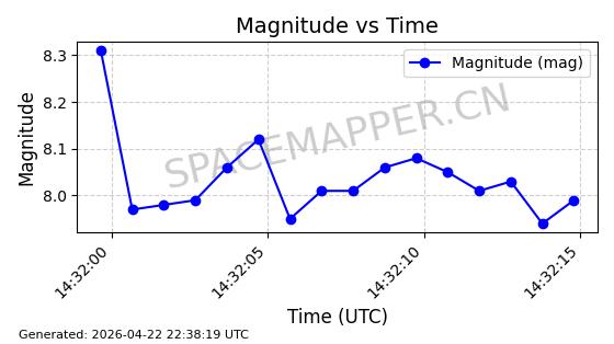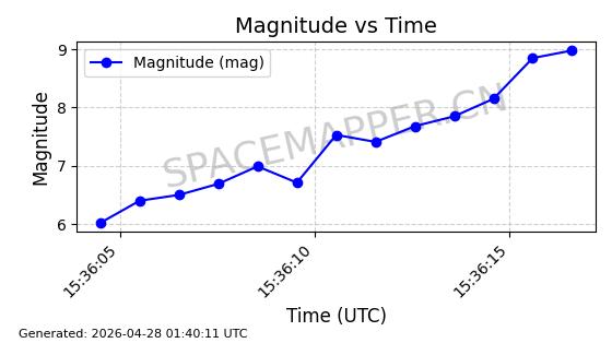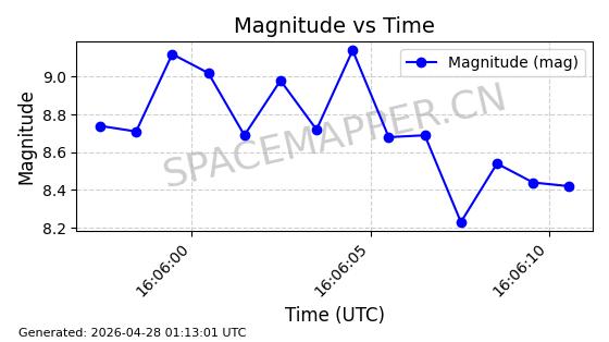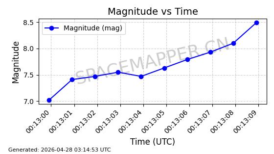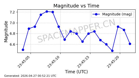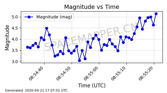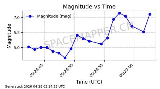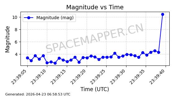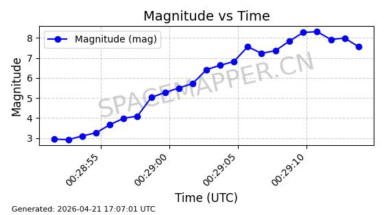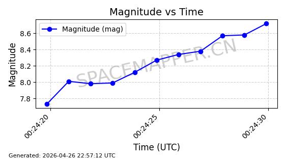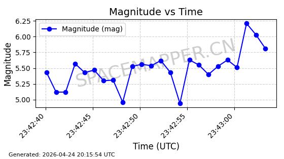 | STARLINK-11084 | 59717 | 59717 | 2024-05-10 同日期轨道 2024-088K 同批次轨道 | 在轨 | 92分钟 | 53.1597 | 358.971 | 360.553 | 0.0001173 | 2026-04-27 04:50:51 | ||