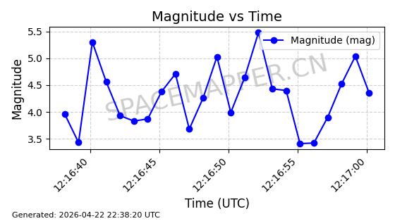 | STARLINK-11083 | 59424 | 59424 | 2024-04-07 同日期轨道 2024-065D 同批次轨道 | 在轨 | 92分钟 | 53.1596 | 359.284 | 360.174 | 0.0000660 | 2026-04-26 12:22:40 | ||