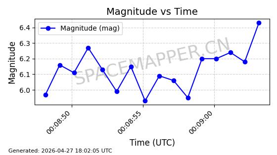 | 卫星名称 | AOE ID | NORAD ID | 发射日期 国际编号 | 在轨状态 | 轨道周期 | 轨道倾角 (度) | 近地点 (Km) | 远地点 (Km) | 偏心率 | 更新时间 (UTC) | 近期光变曲线 | 服务 |