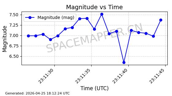 | STARLINK-11087 | 59421 | 59421 | 2024-04-07 同日期轨道 2024-065A 同批次轨道 | 在轨 | 92分钟 | 53.1595 | 359.166 | 360.348 | 0.0000876 | 2026-04-26 10:58:03 | ||