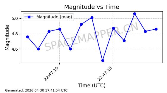 | STARLINK-30277 | 57645 | 57645 | 2023-08-17 同日期轨道 2023-122P 同批次轨道 | 在轨 | 94分钟 | 43.0039 | 482.068 | 483.868 | 0.0001311 | 2026-04-30 03:01:32 | ||