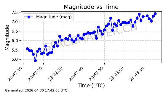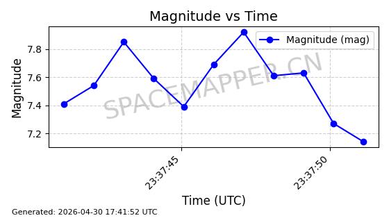 | STARLINK-30311 | 57637 | 57637 | 2023-08-17 同日期轨道 2023-122F 同批次轨道 | 在轨 | 94分钟 | 43.0055 | 482.057 | 483.981 | 0.0001402 | 2026-04-30 04:01:02 | ||