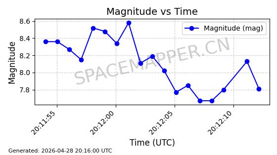 | STARLINK-11387 | 62090 | 62090 | 2024-11-25 同日期轨道 2024-220C 同批次轨道 | 在轨 | 92分钟 | 42.9976 | 355.396 | 357.36 | 0.0001457 | 2026-04-28 05:45:55 | ![]() | |