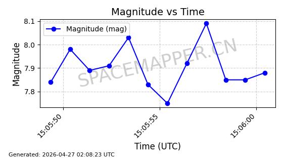 | TIANQI 16 | 64058 | 64058 | 2025-05-19 同日期轨道 2025-105A 同批次轨道 | 在轨 | 103分钟 | 44.9838 | 888.536 | 905.034 | 0.0011338 | 2026-04-27 05:08:43 | ![]() | |