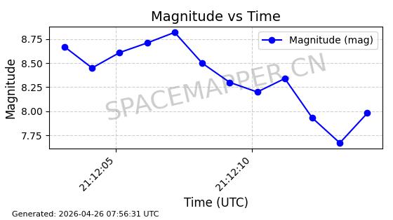 | TIANQI 17 | 64059 | 64059 | 2025-05-19 同日期轨道 2025-105B 同批次轨道 | 在轨 | 103分钟 | 44.9799 | 889.026 | 904.536 | 0.0010659 | 2026-04-27 05:34:56 | ![]() | |