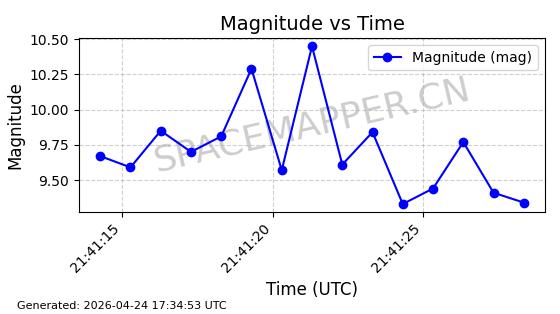 | TIANQI 26 | 59910 | 59910 | 2024-05-29 同日期轨道 2024-102B 同批次轨道 | 在轨 | 103分钟 | 44.9716 | 889.47 | 903.902 | 0.0009919 | 2026-04-27 07:27:33 | ||