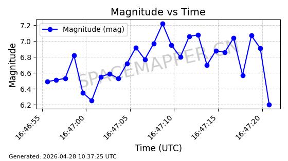 | 卫星名称 | AOE ID | NORAD ID | 发射日期 国际编号 | 在轨状态 | 轨道周期 | 轨道倾角 (度) | 近地点 (Km) | 远地点 (Km) | 偏心率 | 更新时间 (UTC) | 近期光变曲线 | 服务 |